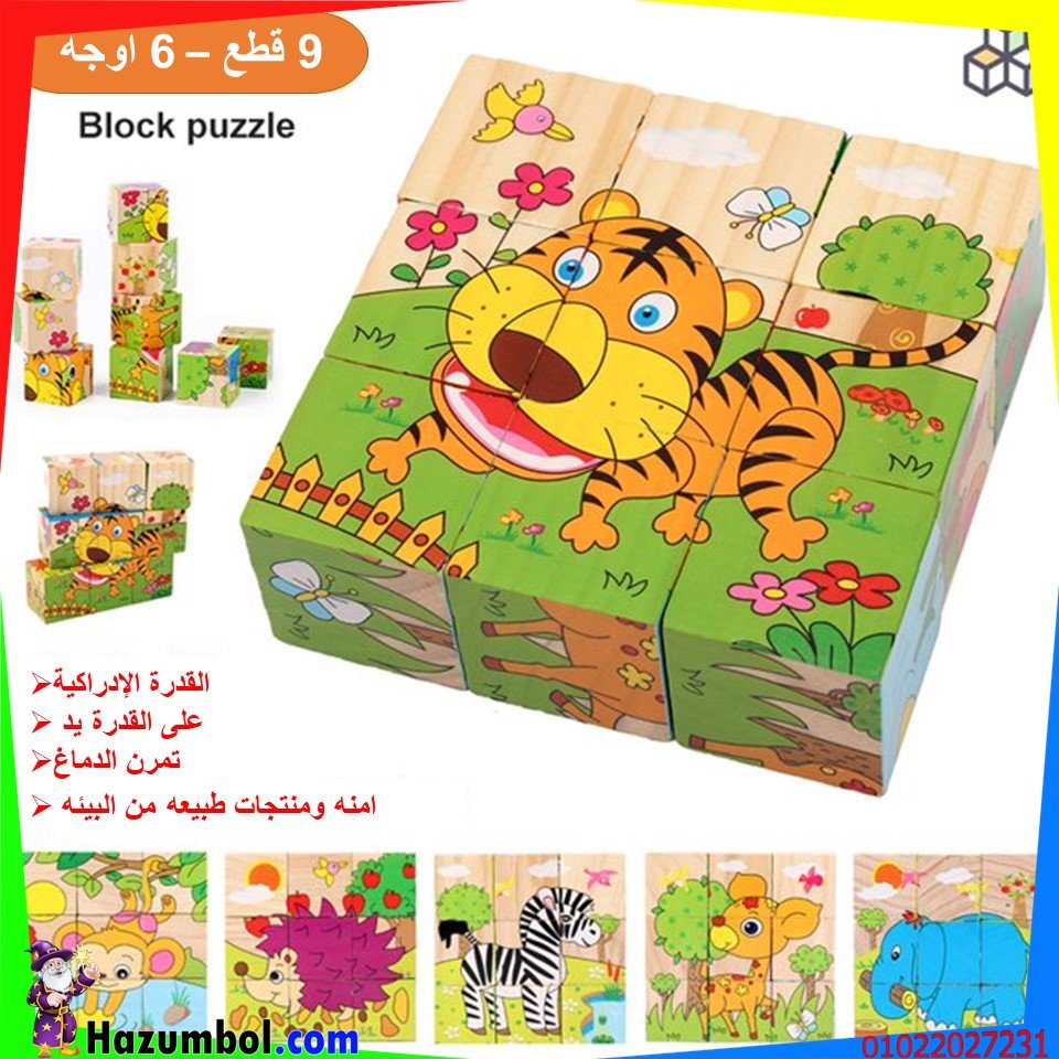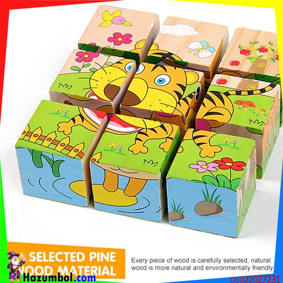 بازل مكعبات 9 قطع خشبيه ألغاز خشبية آمنة، مصنوعة من خشب بيئي عالي الجودة مع طلاء مائي. قطع سهلة الإمساك بحافة ناعمة ، تحافظ على سلامة أولادك وبناتك في عمر 3 سنوات.التعلم من خلال اللعب